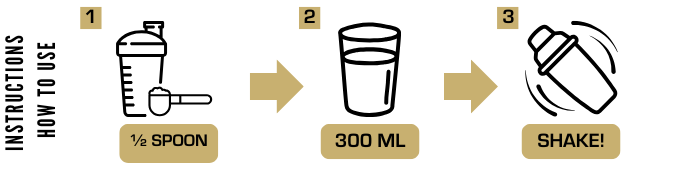 Nehmen Sie an Trainingstagen 1 Portion ca. 30 - 40 Min. vor dem Fußball. Rühren Sie 4,9g Pulver (= ½ Messlöffel / halbes Messlöffel) in 300ml kaltes Wasser. Nach dem Gebrauch die Dose schnellstmöglich wieder verschließen!