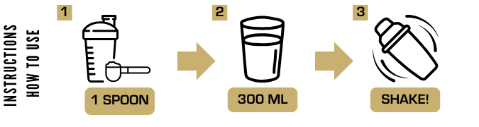 Geben Sie 20g (= 1 gehäufter Messlöffel) zusammen mit 300ml kaltem Wasser in einen Mixbecher und schütteln diesen bis das Pulver vollständig aufgelöst ist. Verzehren Sie täglich 1 Portion.